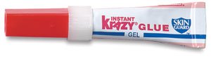 Krazy Glue Gel does not bond skin instantly, which makes it easier to work with than super glues. It is ideal for porous materials. It instantly bonds plastic, metal, rubber, glass, and ceramics. Use Krazy Glue Gel to glue up, down, and sideways. .07 oz.