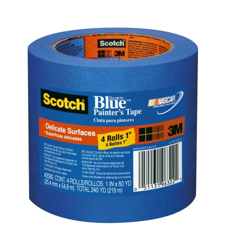 3M 2080 Scotch-Blue Painter's Tape for Delicate Surfaces, 1-Inch x 60-Yard, 4-Pack